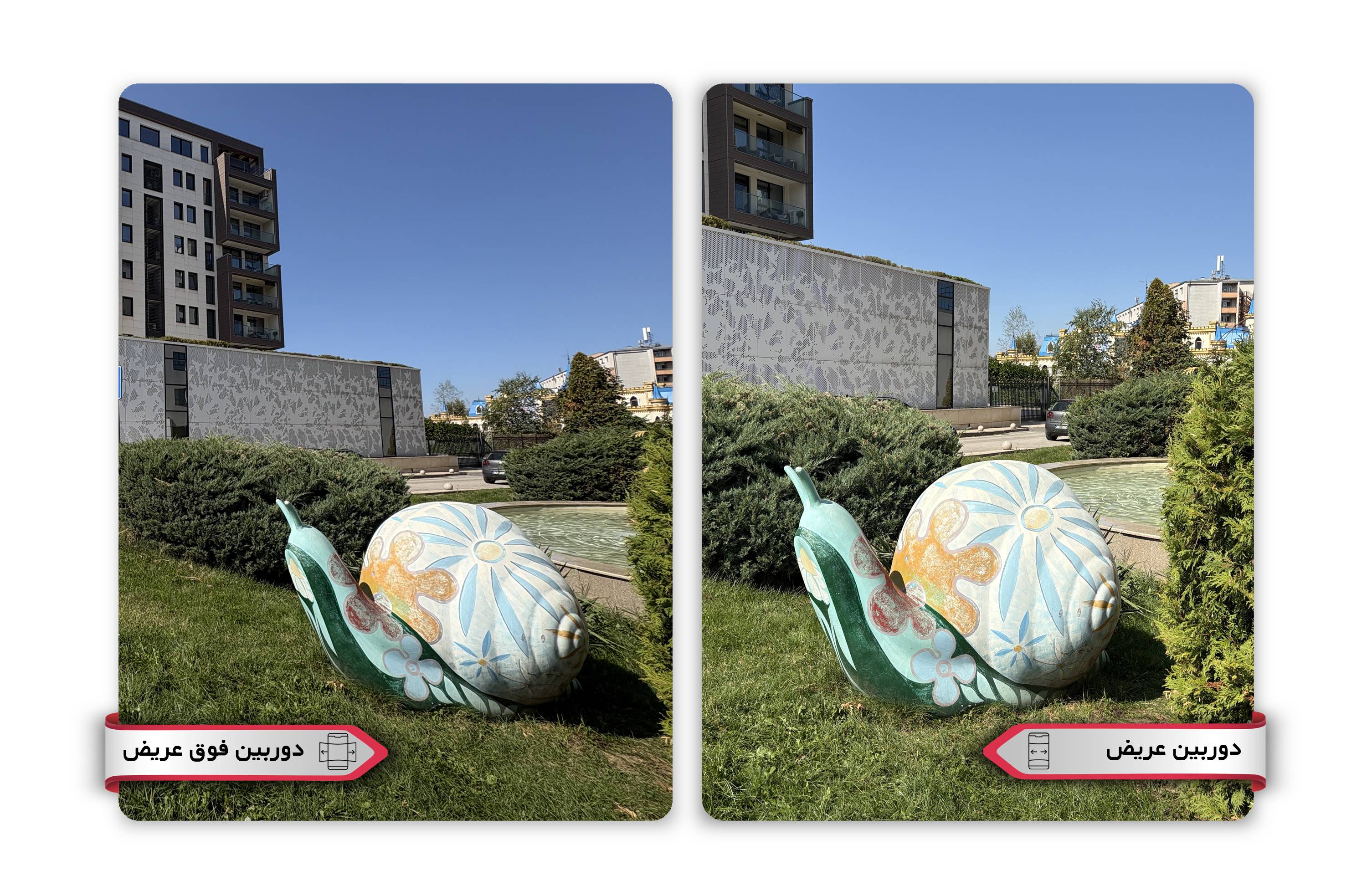 دوربین فوق عریض (اولتراواید) امسال ارتقای مهمی دریافت کرده است. این سنسور 12 مگاپیکسلی حالا دیافراگم روشن‌تر f/2.2 و مهم‌تر از آن، فوکوس خودکار دارد. کیفیت کلی عکس‌های اولتراواید خوب ارزیابی شده است. جزئیات ثبت شده در فریم خوب، نویز کم و رنگ‌بندی آن با دوربین اصلی (عریض) هماهنگ است. البته، همانطور که انتظار می‌رود، وضوح آن به اندازه دوربین اصلی نیست و محدوده دینامیکی آن کمی محدودتر است، اما در مجموع یک پیشرفت خوب محسوب می‌شود.